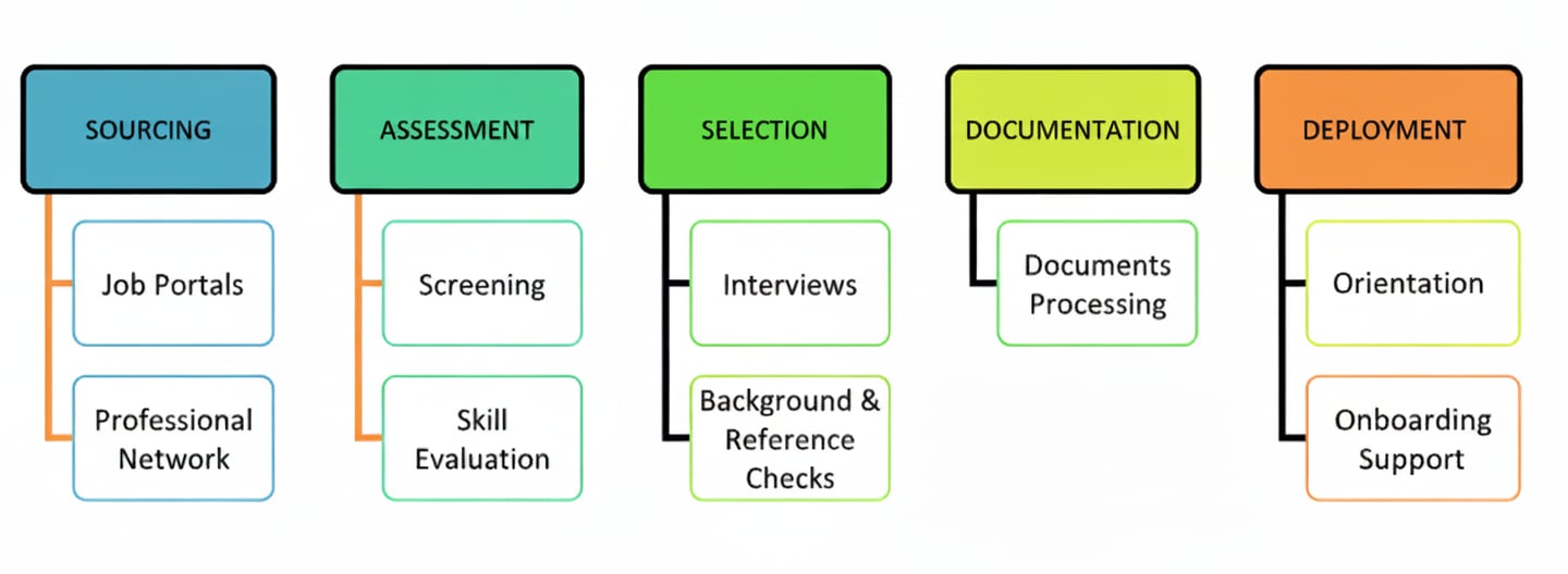 With a collective experience of over 15+ years among our founders, we specialize in delivering end-to-end talent advisory and workforce solutions that empower businesses to build skilled, future-ready teams.
